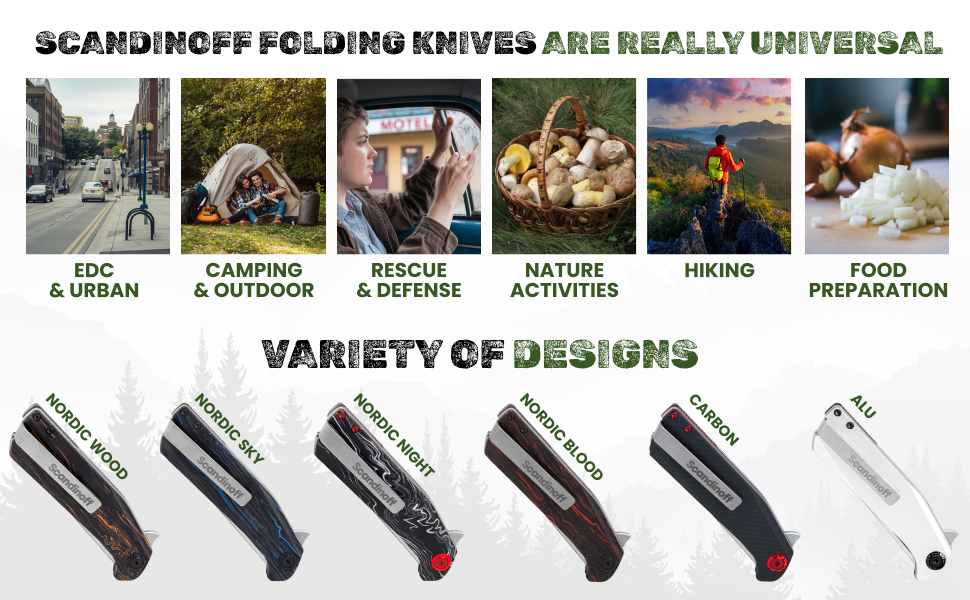 Initially, the brand focused on handmade Viking Seax knives. The great interest and popularity of these knives led to the establishment of the SCANDINOFF 3D design studio, which began creating its own visualizations, 3D models and production drawings of other types of knives, based on the shape of the Viking Seax, but adapted to modern requirements for use and maintenance of the knife. Over time, other types of knives were created that no longer emphasized only the preservation of design, but also the durability and utility value of the knives. All this allowed the brand to move on to its own ideas and designs, as evidenced, for example, by this folding pocket knife or the Vario knife, an excellent universal design created by the SCANDINOFF design studio.
